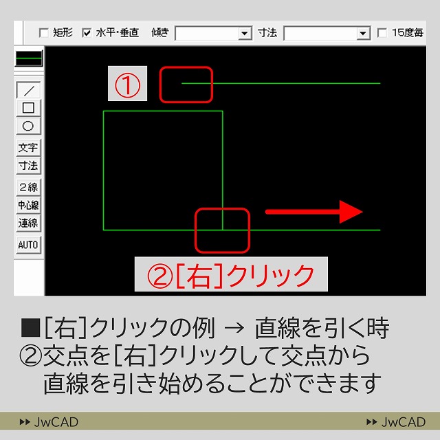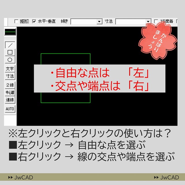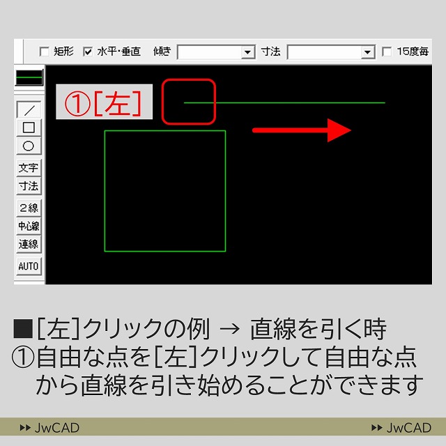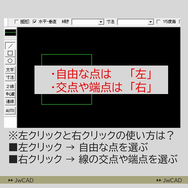 このページではJwCADの基本操作「クリックの使い方」のうち