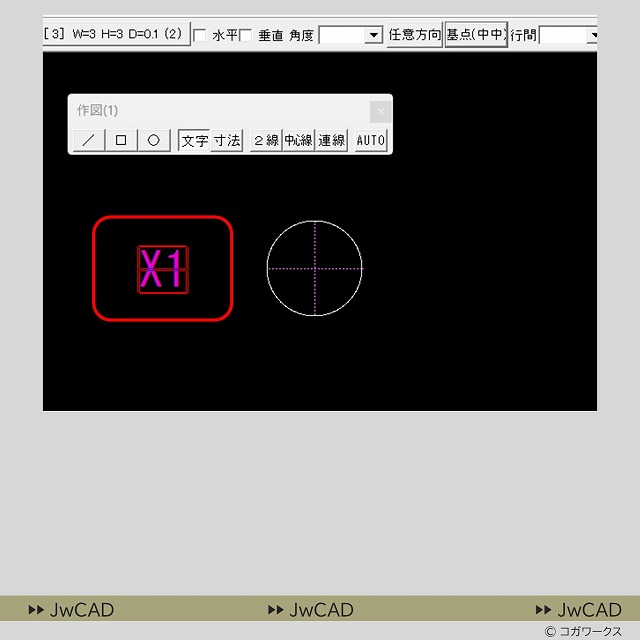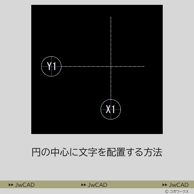 - 作図で必ず登場する「通り芯の記号」の作図などで円の中心に文字を配置する方法