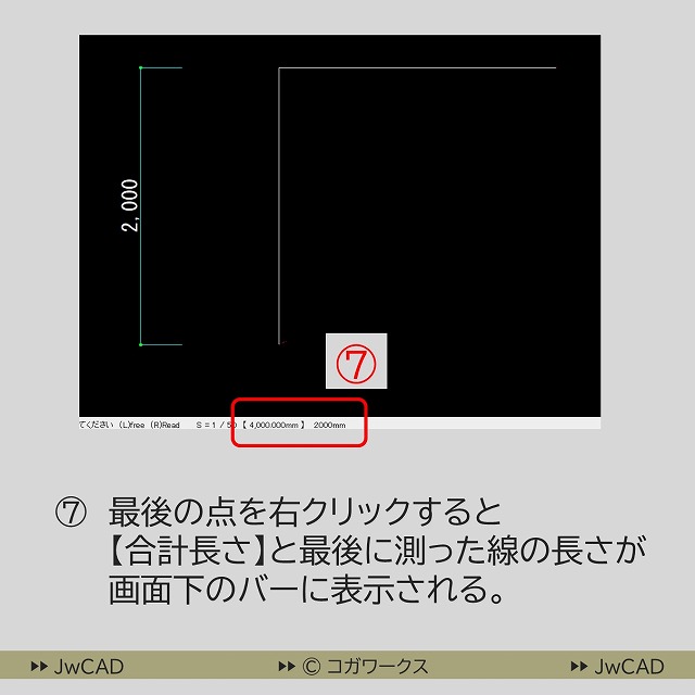 ⑦ 最後の点を右クリックしたら画面下のバーに
