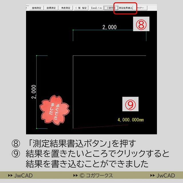 - JwCADの基本操作 【測定コマンド】→【距離測定】・【面積測定】→【測定結果書込】の使い方